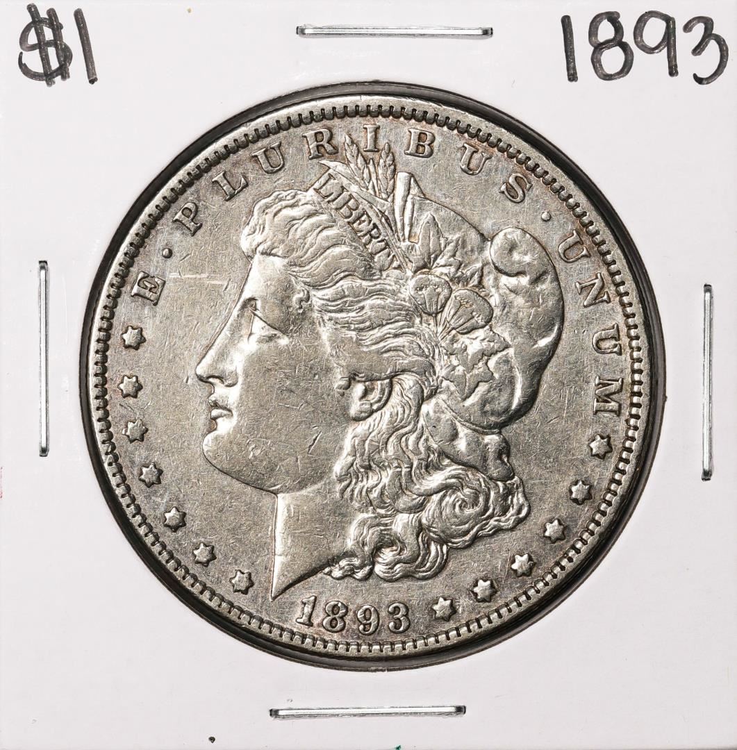 One 1893 $1 Morgan Silver Dollar Coin.