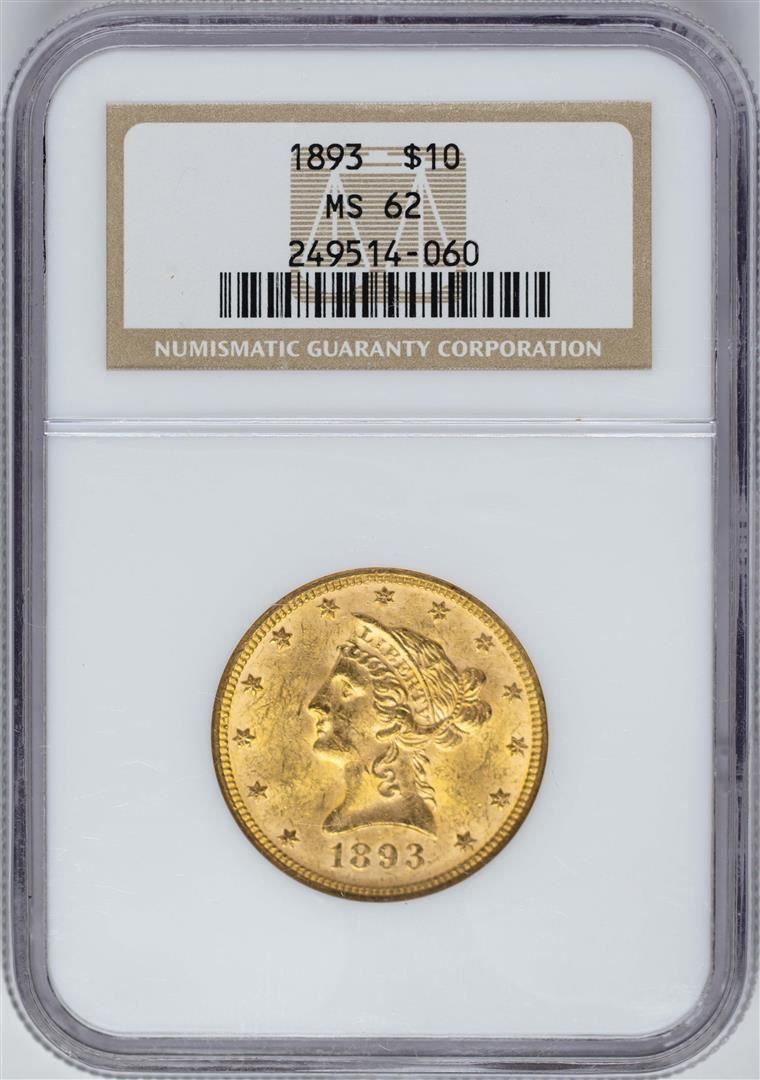 One 1893 $10 Liberty Head Eagle Gold Coin NGC MS62. NGC Certified.