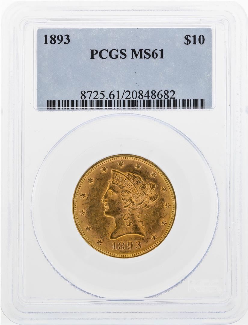 One 1893 $10 Liberty Head Eagle Gold Coin PCGS MS61. PCGS Graded.