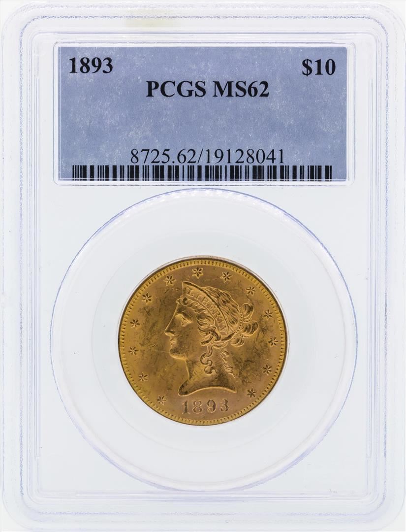 One 1893 $10 Liberty Head Eagle Gold Coin PCGS MS62. PCGS Graded.