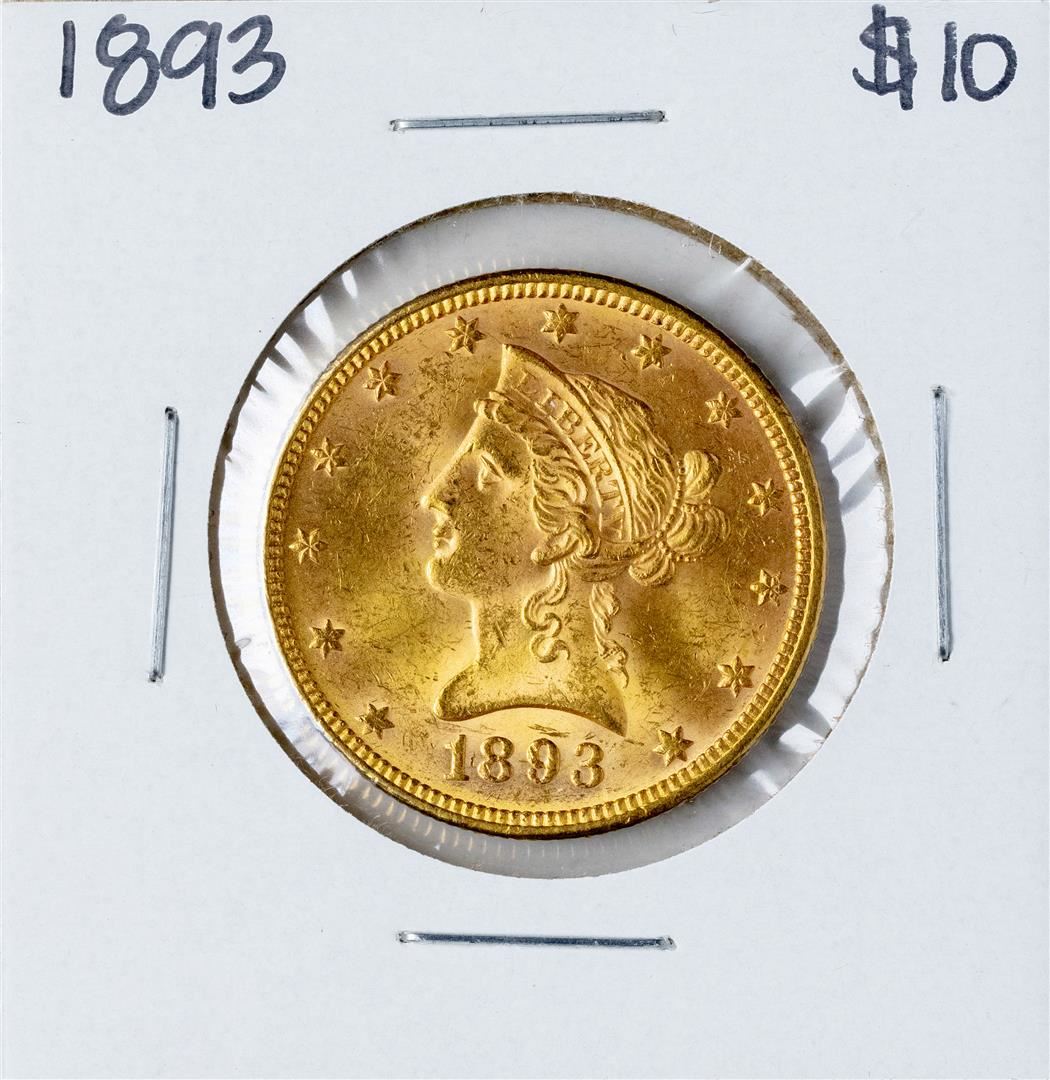One 1893 $10 Liberty Head Eagle Gold Coin.