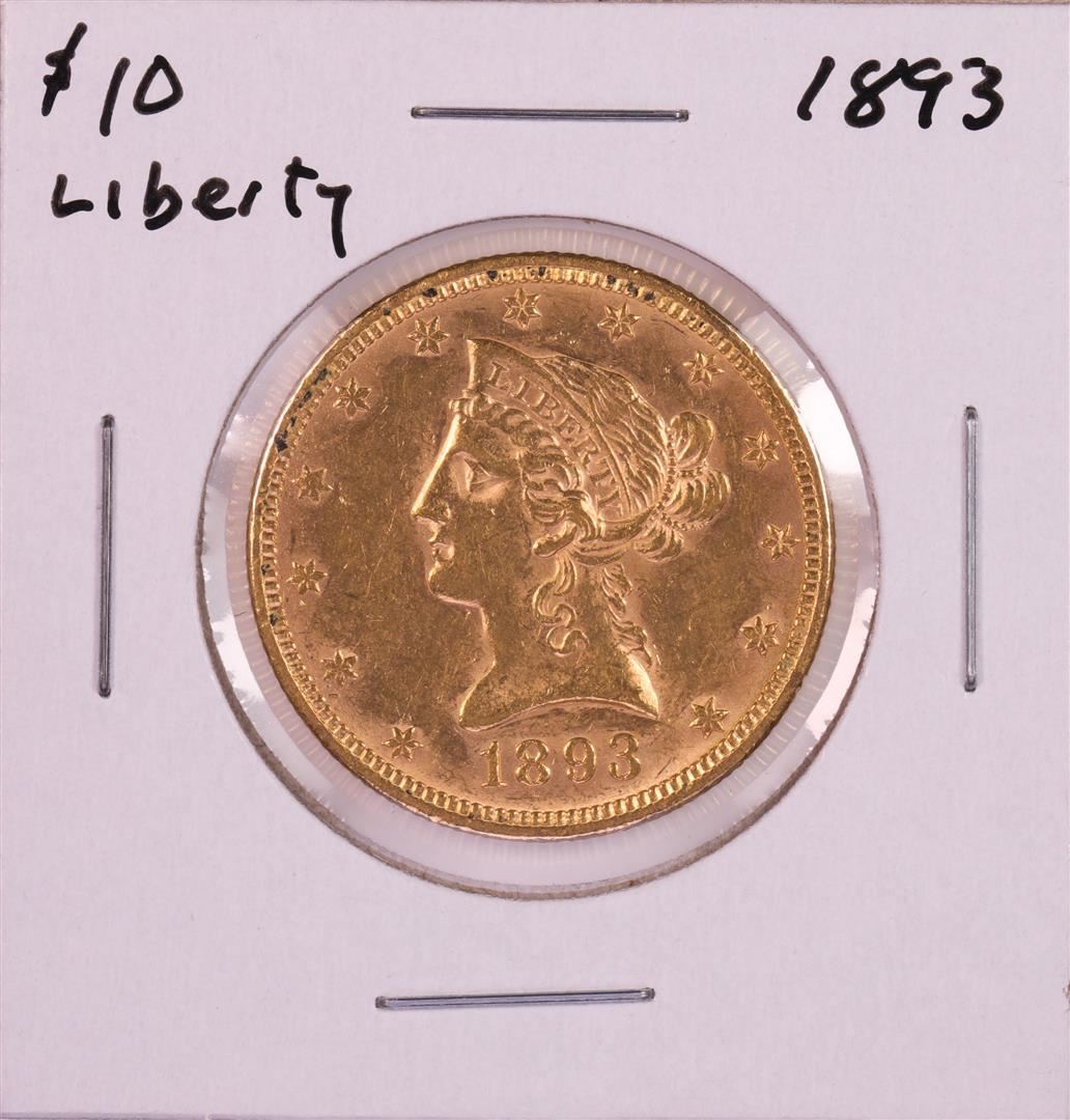 One 1893 $10 Liberty Head Eagle Gold Coin.