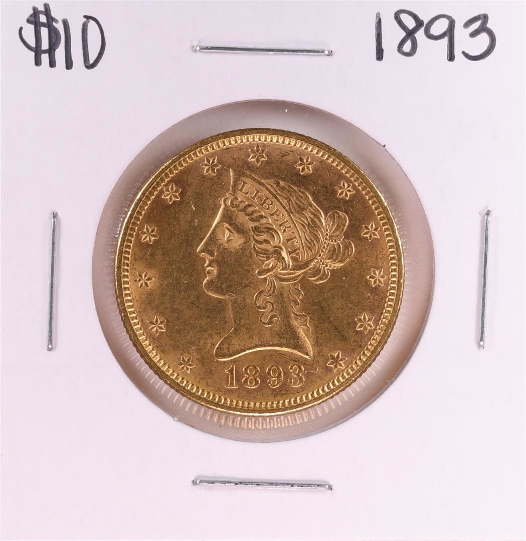 One 1893 $10 Liberty Head Eagle Gold Coin.