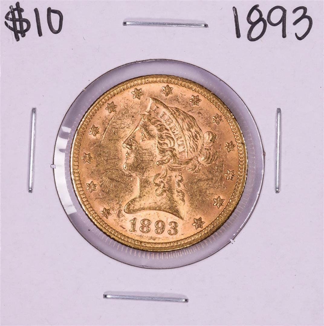 One 1893 $10 Liberty Head Eagle Gold Coin.