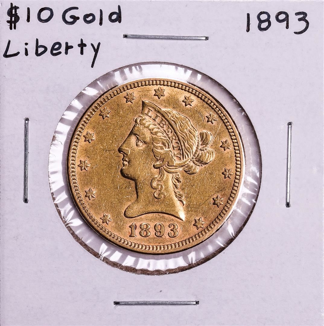 One 1893 $10 Liberty Head Eagle Gold Coin.