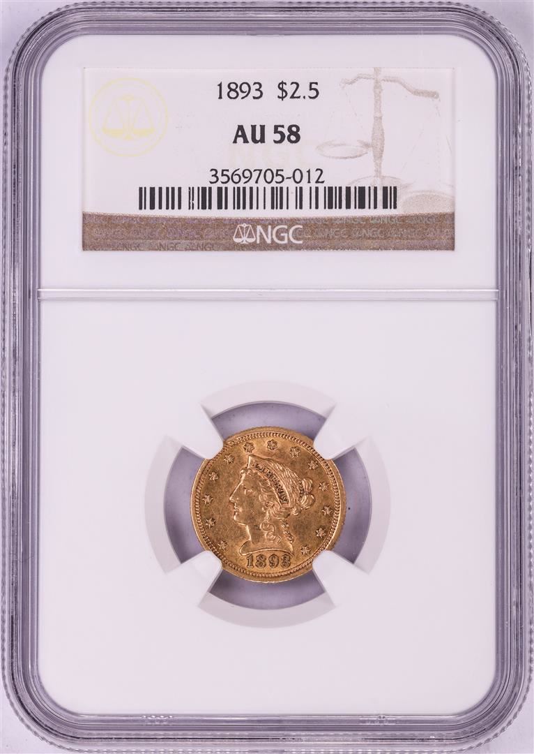 1893 $2 1/2 Liberty Head Quarter Eagle Gold Coin NGC AU58