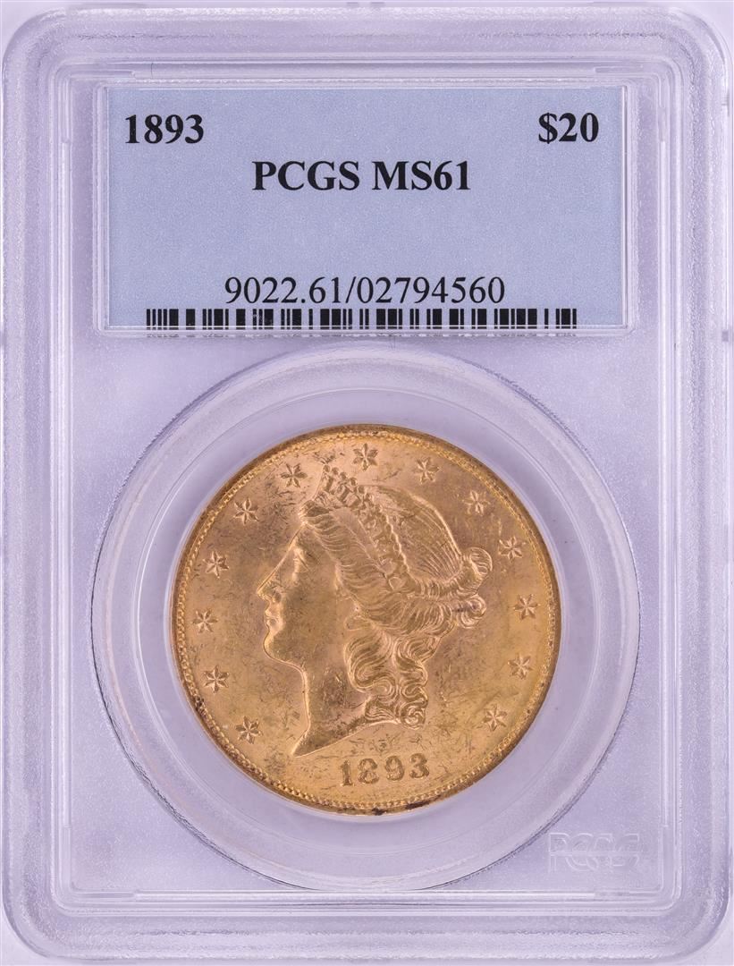 One 1893 $20 Liberty Head Double Eagle Gold Coin PCGS MS61. PCGS Graded.