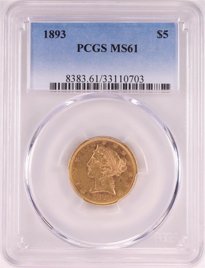 One 1893 $5 Liberty Head Half Eagle Coin PCGS MS61. PCGS Graded.