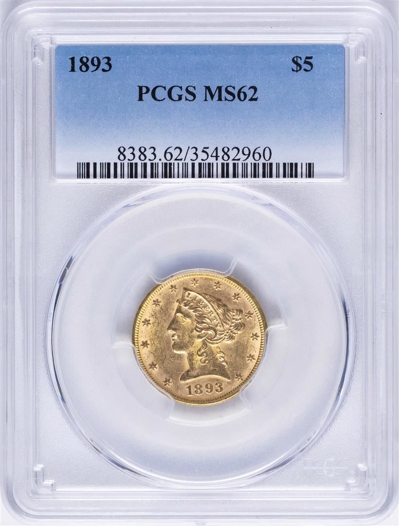 One 1893 $5 Liberty Head Half Eagle Gold Coin PCGS MS62. PCGS Graded.