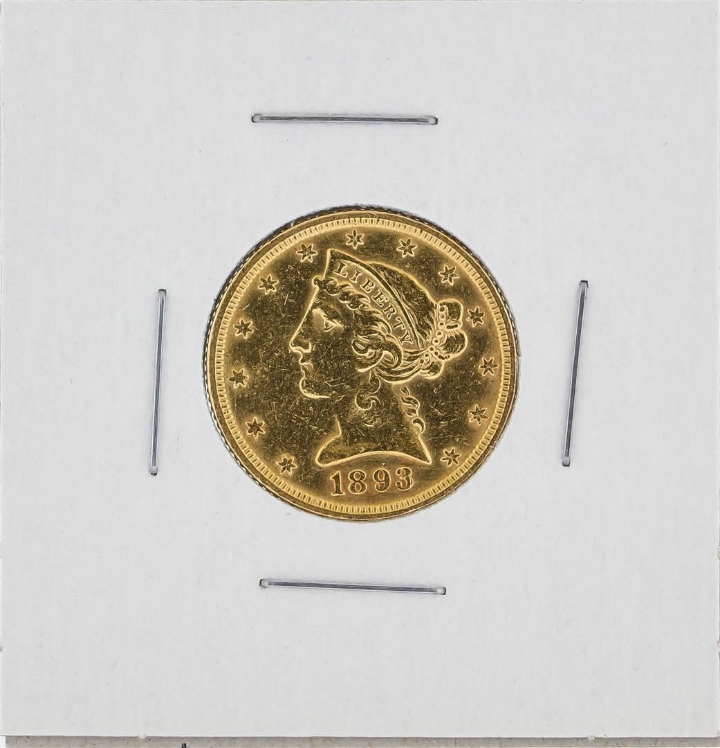 One 1893 $5 Liberty Head Half Eagle Gold Coin.