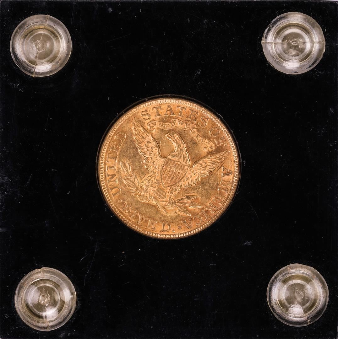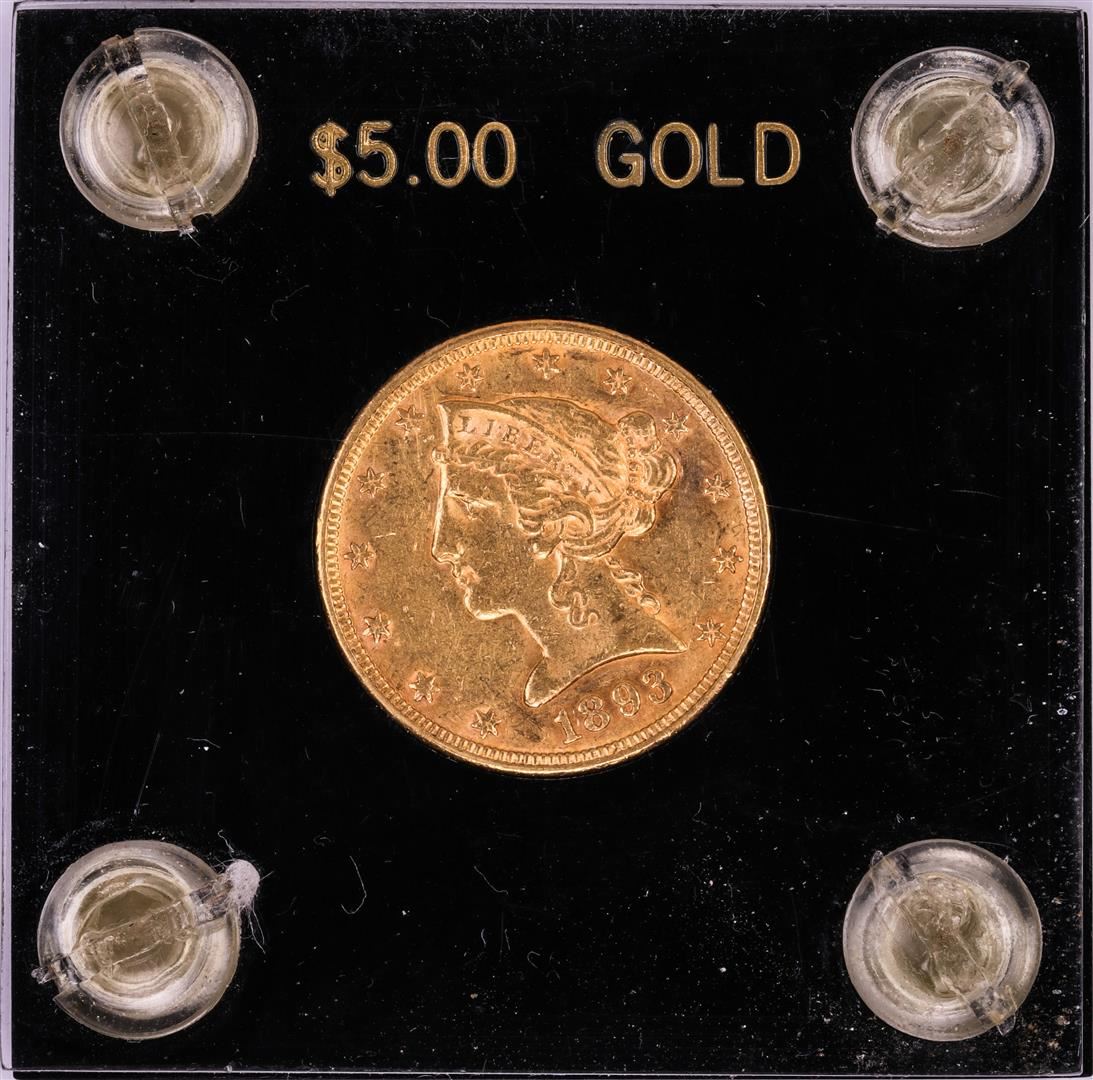 One 1893 $5 Liberty Head Half Eagle Gold Coin.