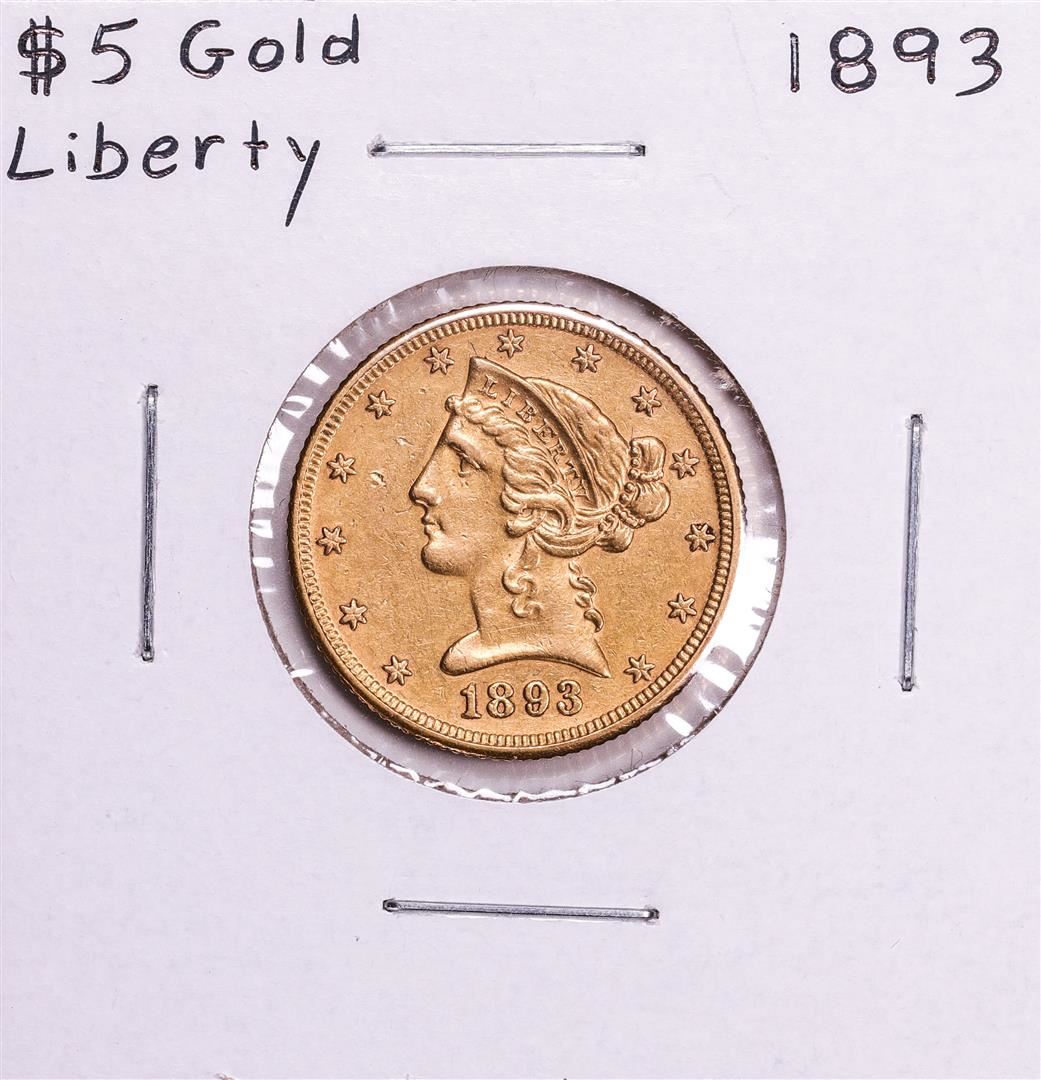 One 1893 $5 Liberty Head Half Eagle Gold Coin.