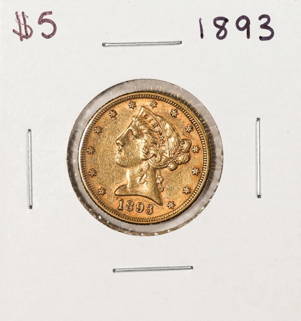 One 1893 $5 Liberty Head Half Eagle Gold Coin.