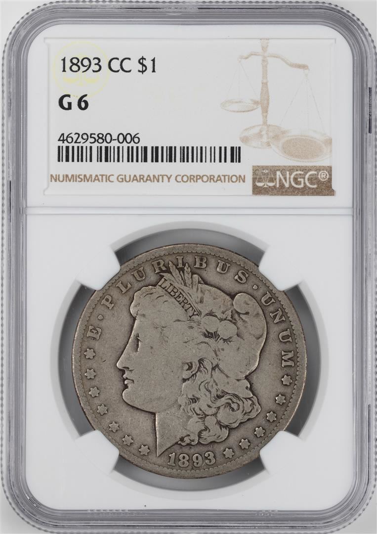 One 1893-CC $1 Morgan Silver Dollar Coin NGC G6. NGC Certified.