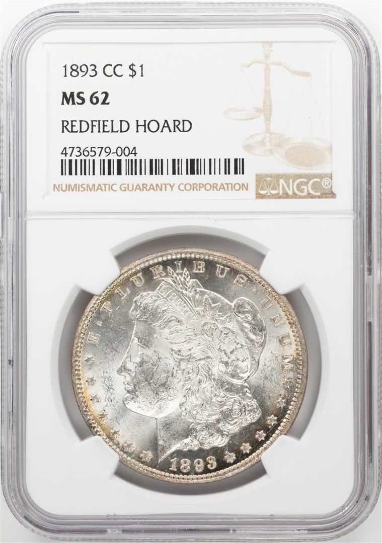 One 1893-CC $1 Morgan Silver Dollar Coin NGC MS62 Redfield. NGC Certified.