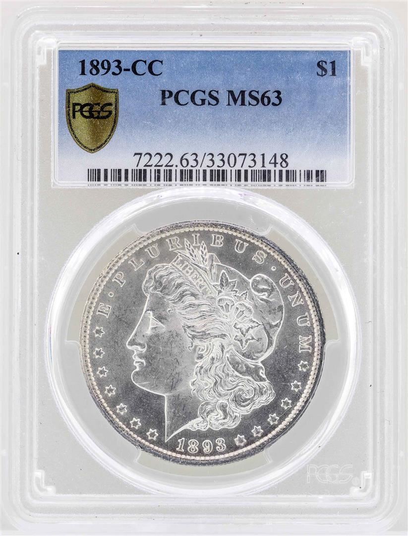 One 1893-CC $1 Morgan Silver Dollar Coin PCGS MS63. PCGS Graded.