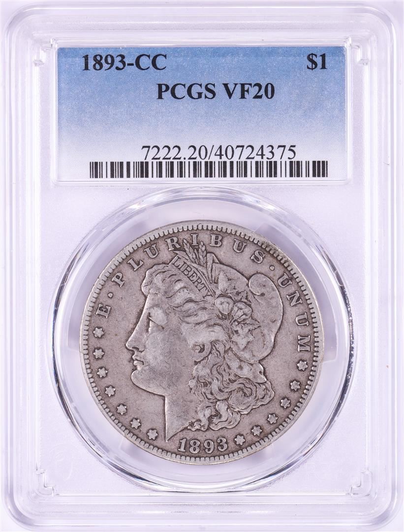 One 1893-CC $1 Morgan Silver Dollar Coin PCGS VF20. PCGS Graded.