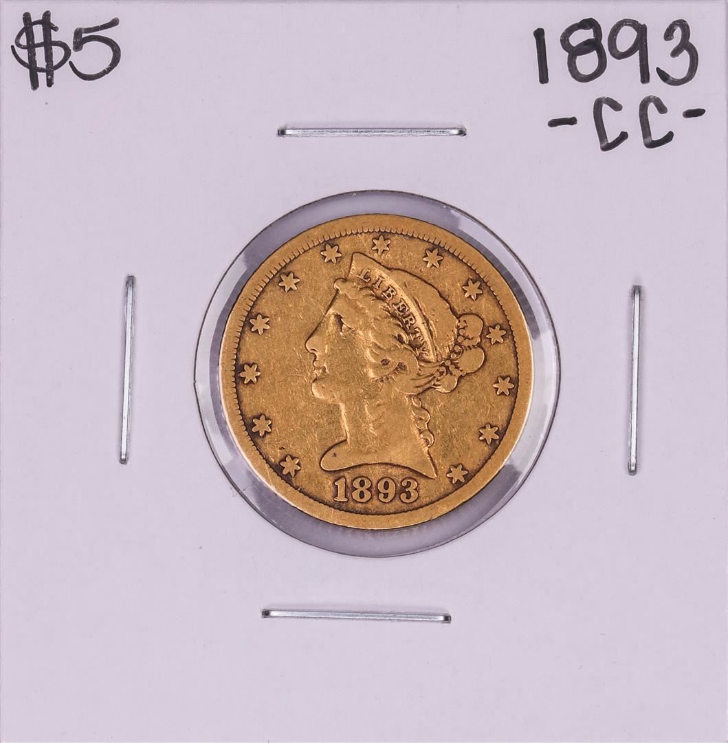 One 1893-CC $5 Liberty Head Half Eagle Gold Coin.