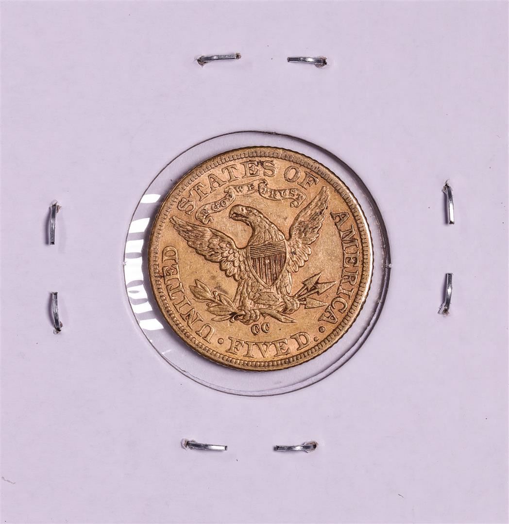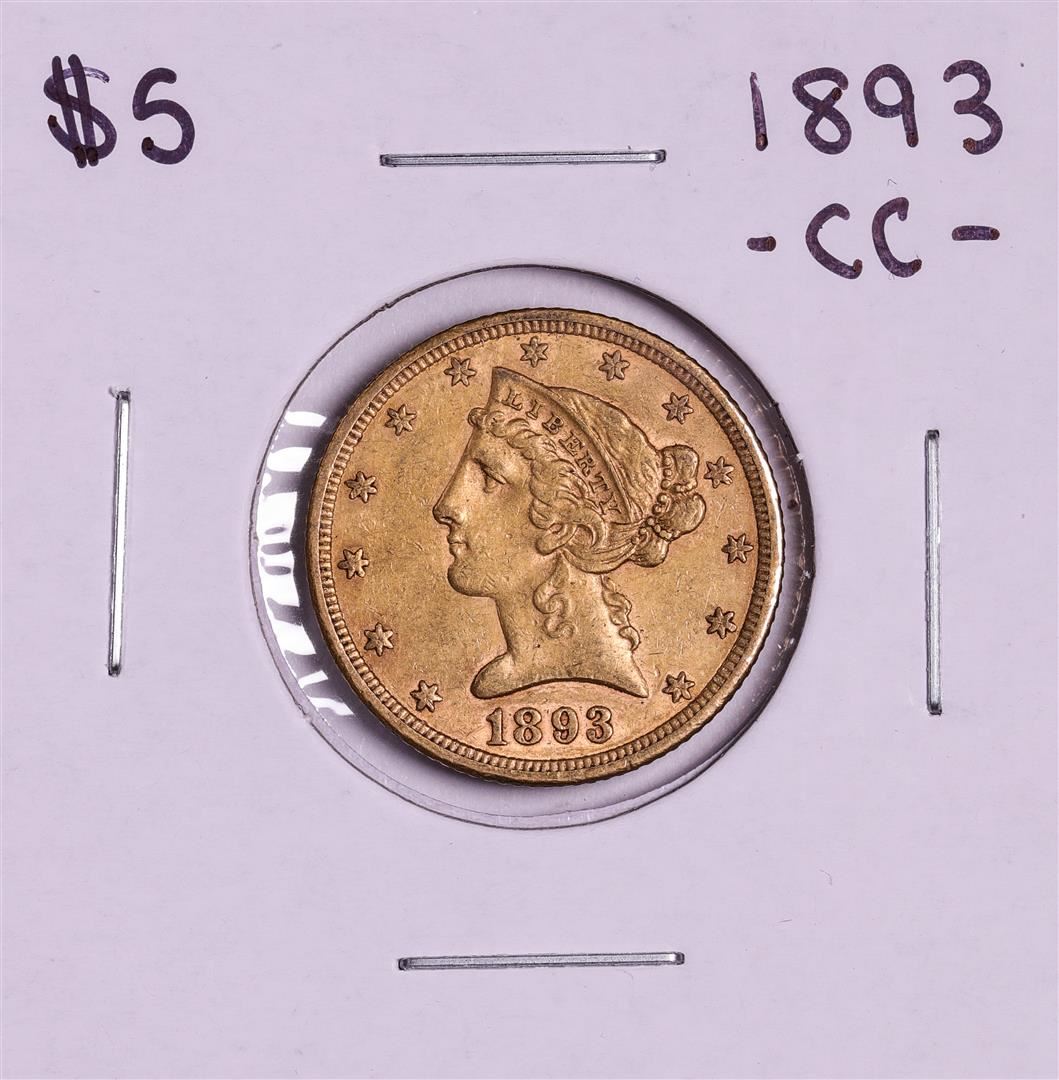 One 1893-CC $5 Liberty Head Half Eagle Gold Coin.