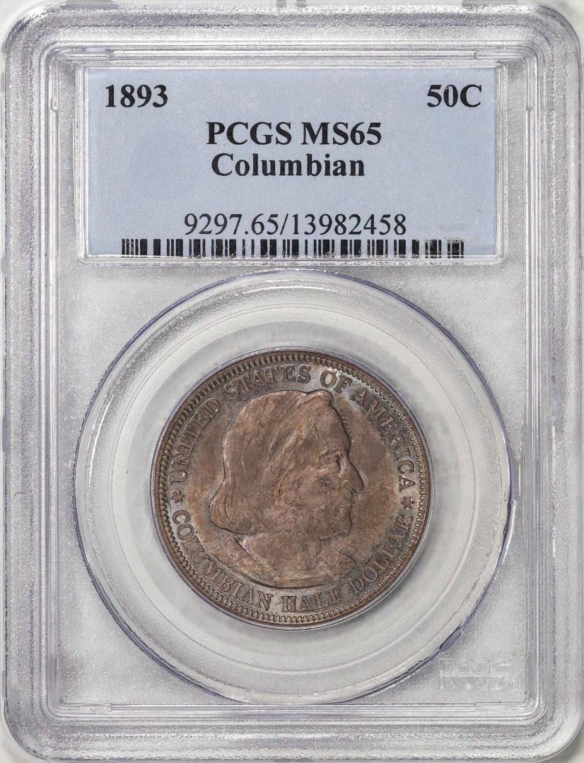 1893 Columbian Commemorative Half Dollar Coin PCGS MS65 Nice Toning