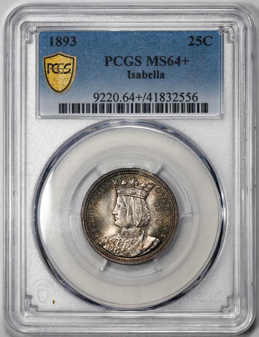 One 1893 Isabella Commemorative Quarter Coin PCGS MS64+. PCGS Graded.
