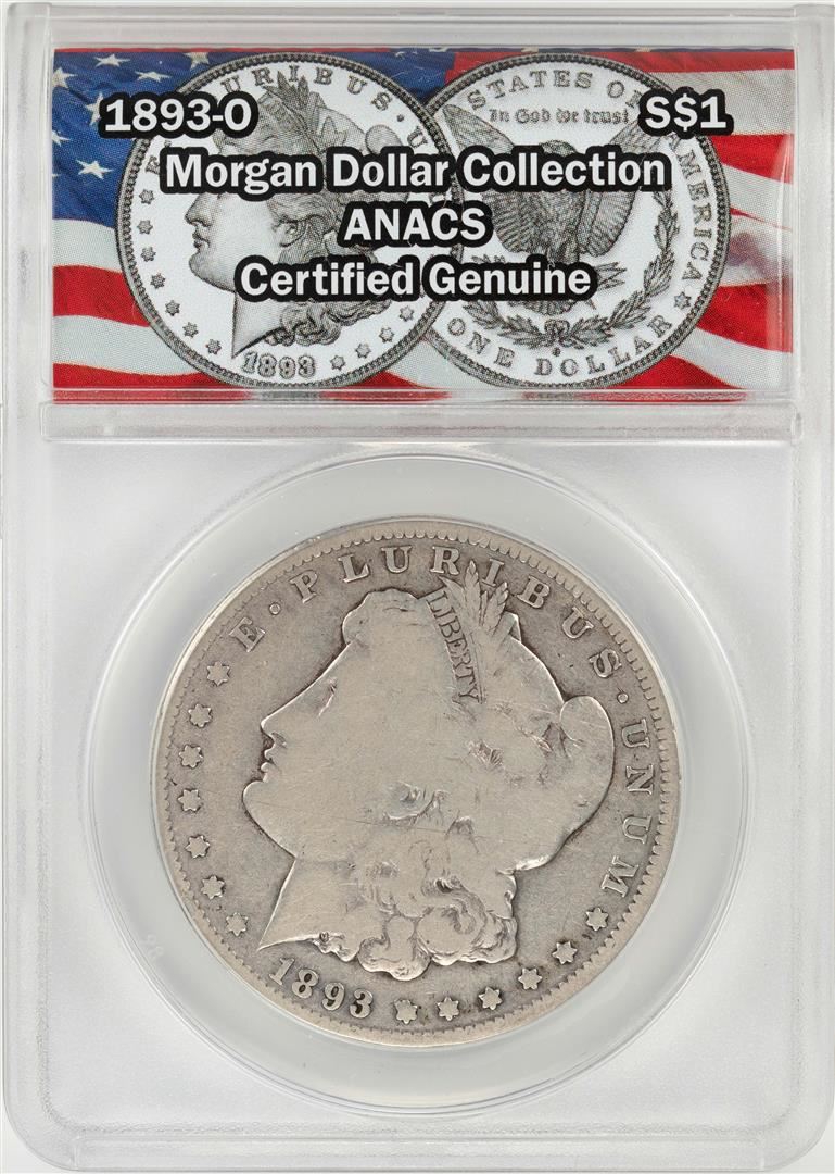 One 1893-O $1 Morgan Silver Dollar Coin ANACS Certified Genuine. ANACS Certified.