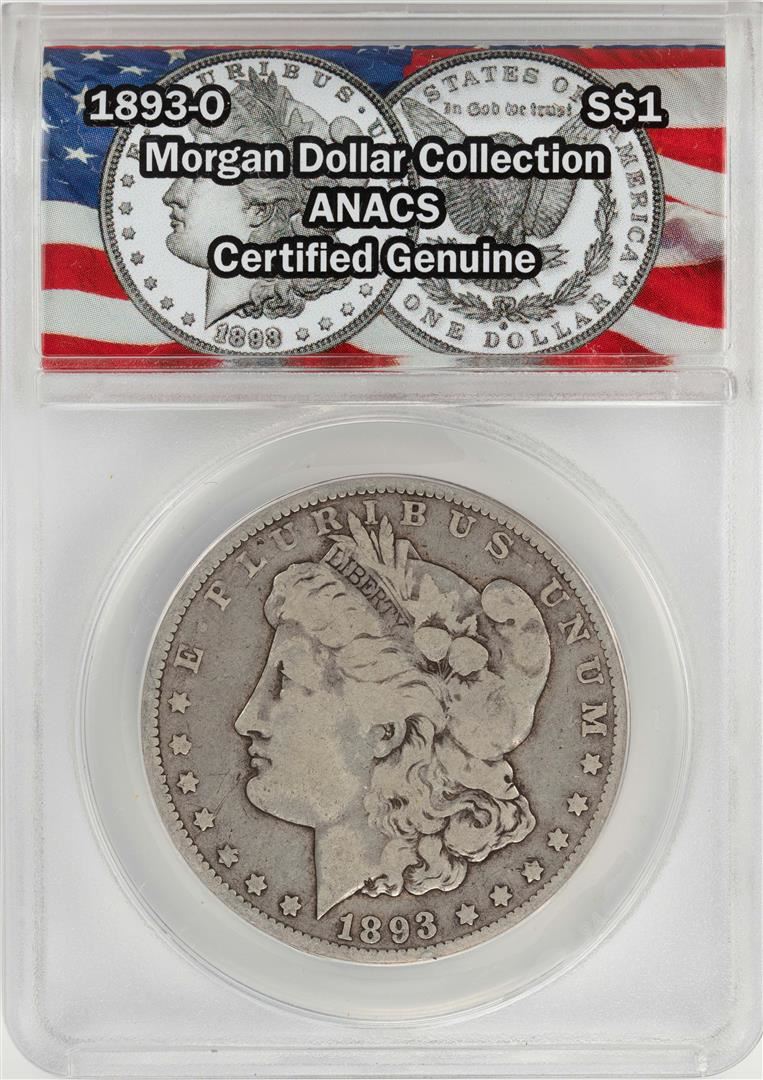 One 1893-O $1 Morgan Silver Dollar Coin ANACS Certified Genuine. ANACS Certified.