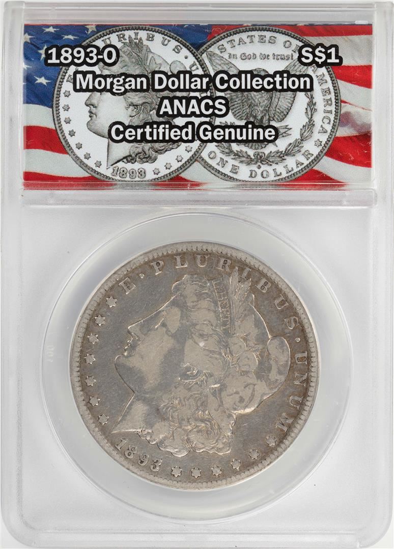 One 1893-O $1 Morgan Silver Dollar Coin ANACS Certified Genuine. ANACS Certified.