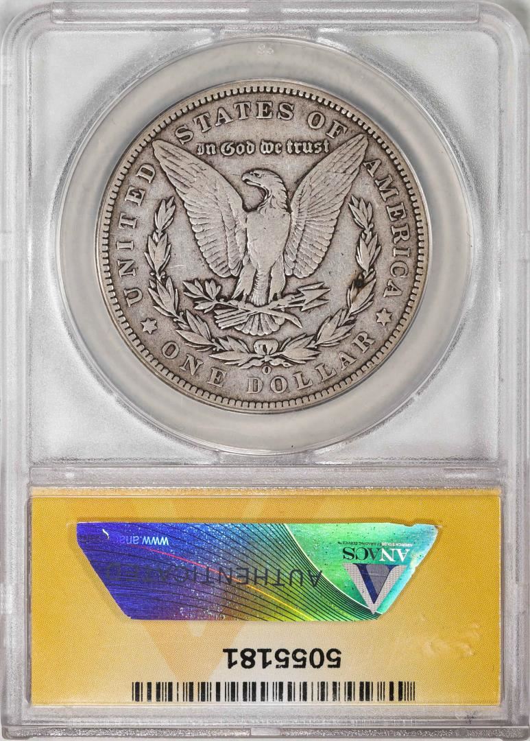One 1893-O $1 Morgan Silver Dollar Coin ANACS VF20. ANACS Certified.