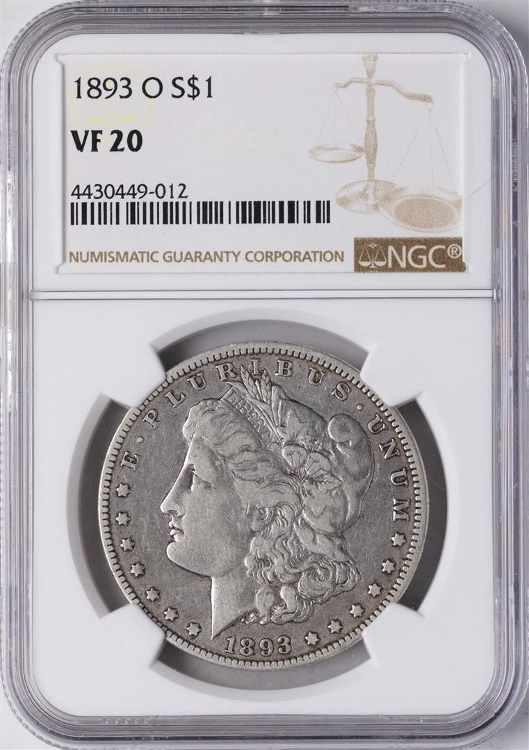 One 1893-O $1 Morgan Silver Dollar Coin NGC VF20. NGC Certified.