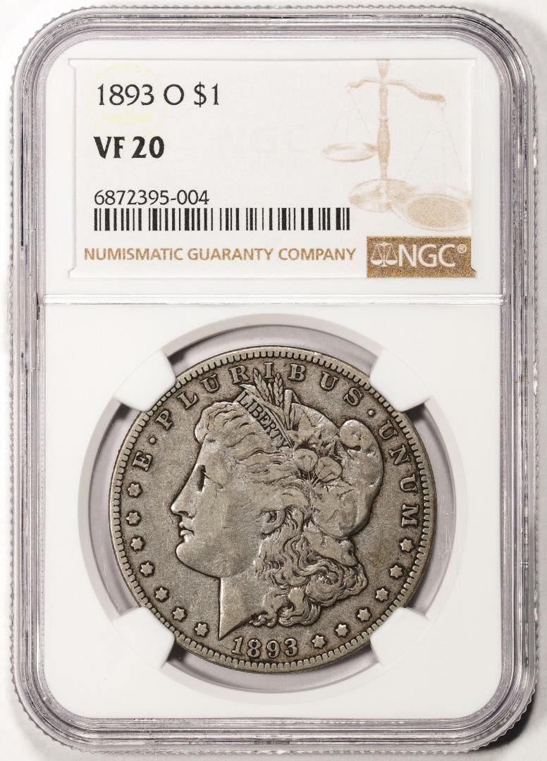 One 1893-O $1 Morgan Silver Dollar Coin NGC VF20. NGC Certified.