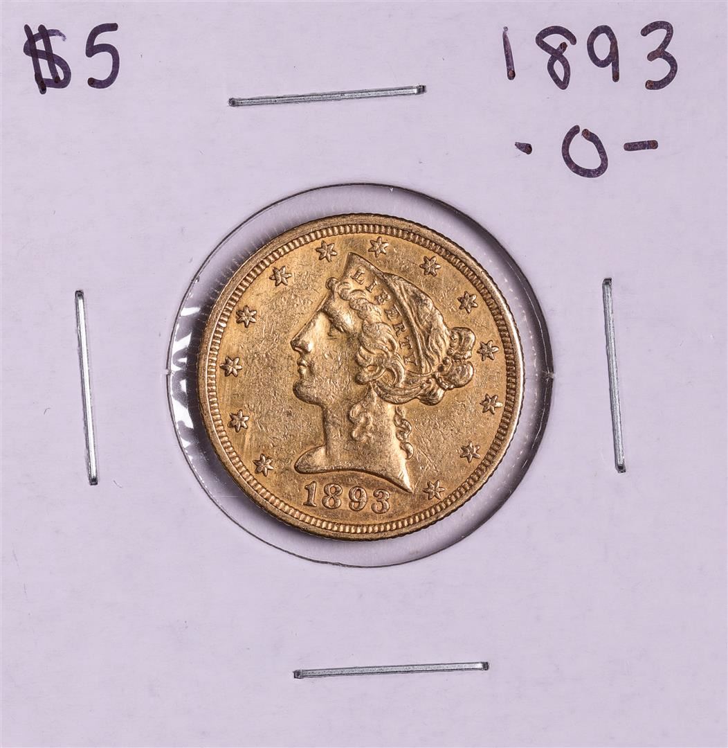 One 1893-O $5 Liberty Head Half Eagle Gold Coin.