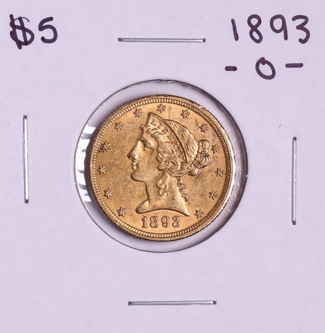 One 1893-O $5 Liberty Head Half Eagle Gold Coin.