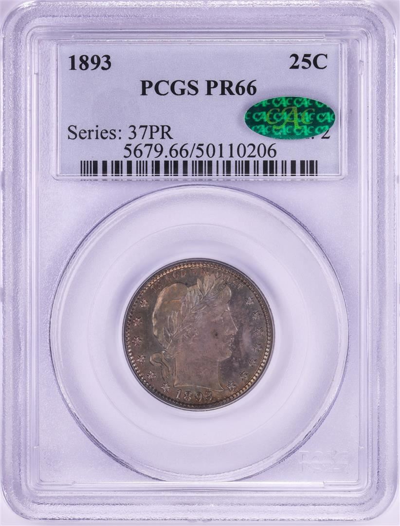 One 1893 Proof Barber Quarter Coin PCGS PR66 CAC. PCGS Graded.
