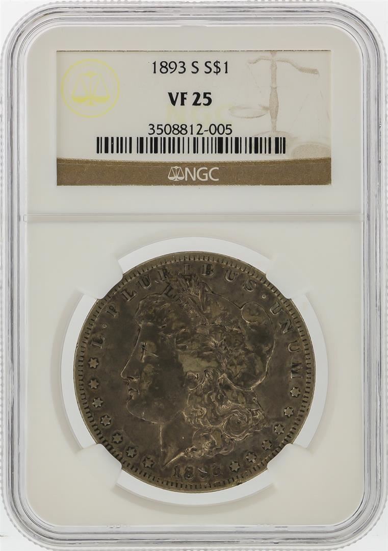 One 1893-S $1 Morgan Silver Dollar Coin NGC Graded VF25. NGC Certified.