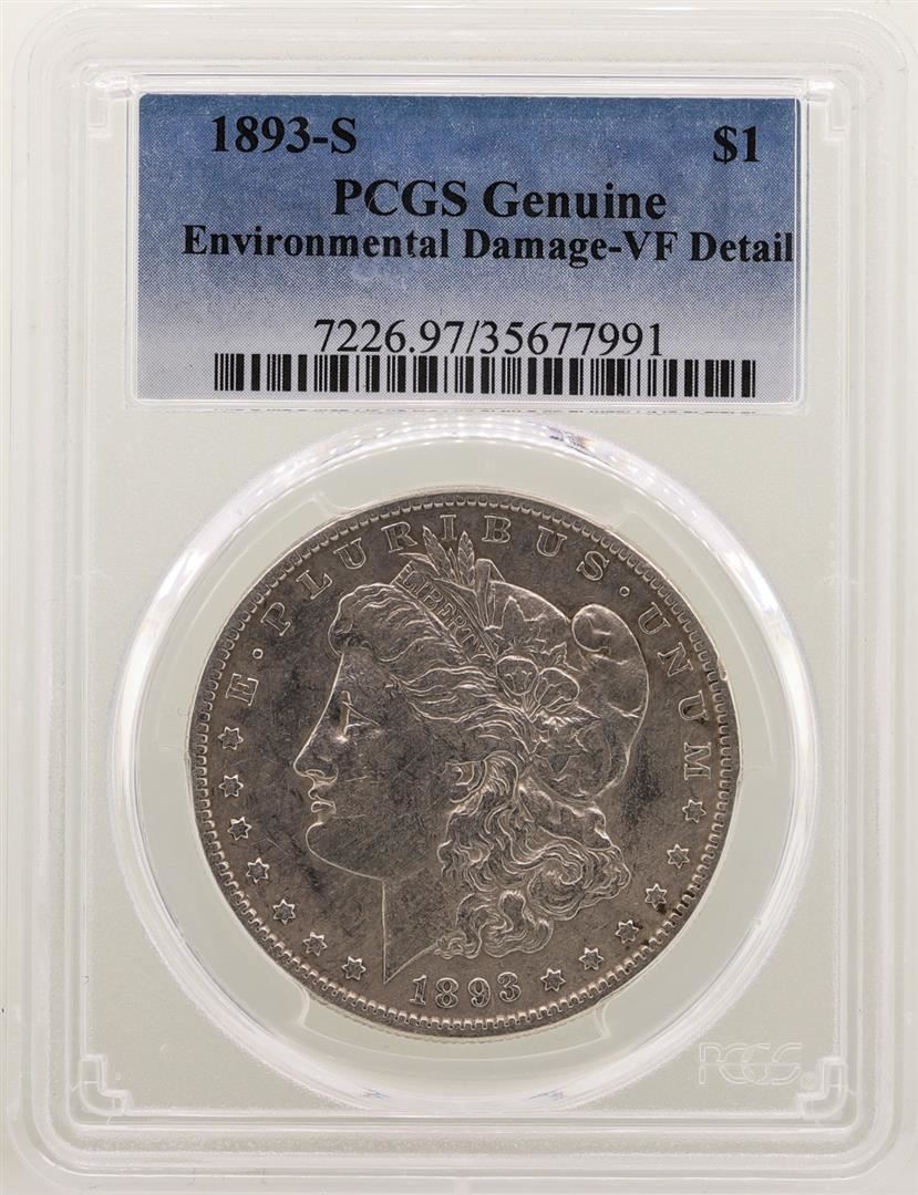 One 1893-S $1 Morgan Silver Dollar Coin PCGS VF Detail. PCGS Graded.