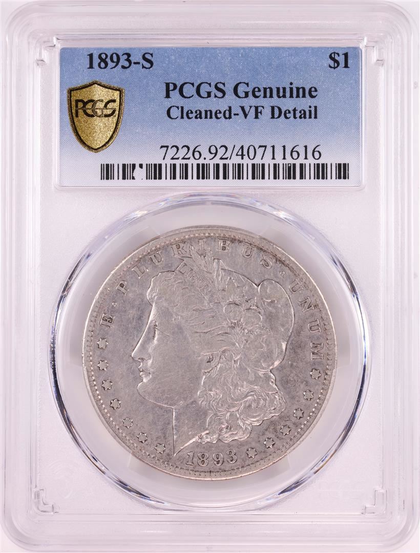 One 1893-S $1 Morgan Silver Dollar Coin PCGS VF Detail.