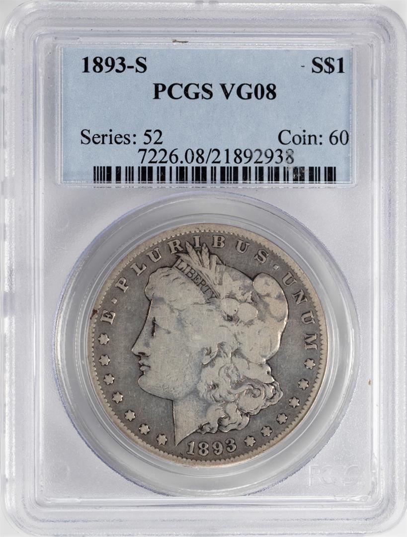 One 1893-S $1 Morgan Silver Dollar Coin PCGS VG08. PCGS Graded.