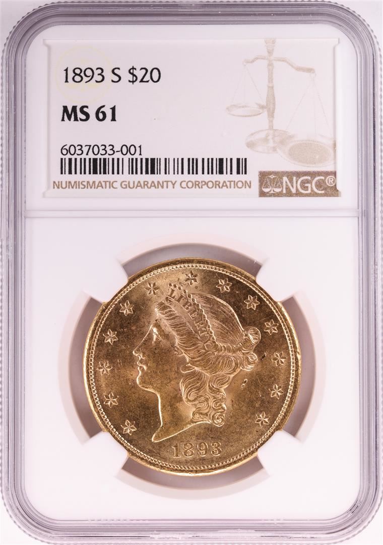 One 1893-S $20 Liberty Head Double Eagle Gold Coin NGC MS61. NGC Certified.