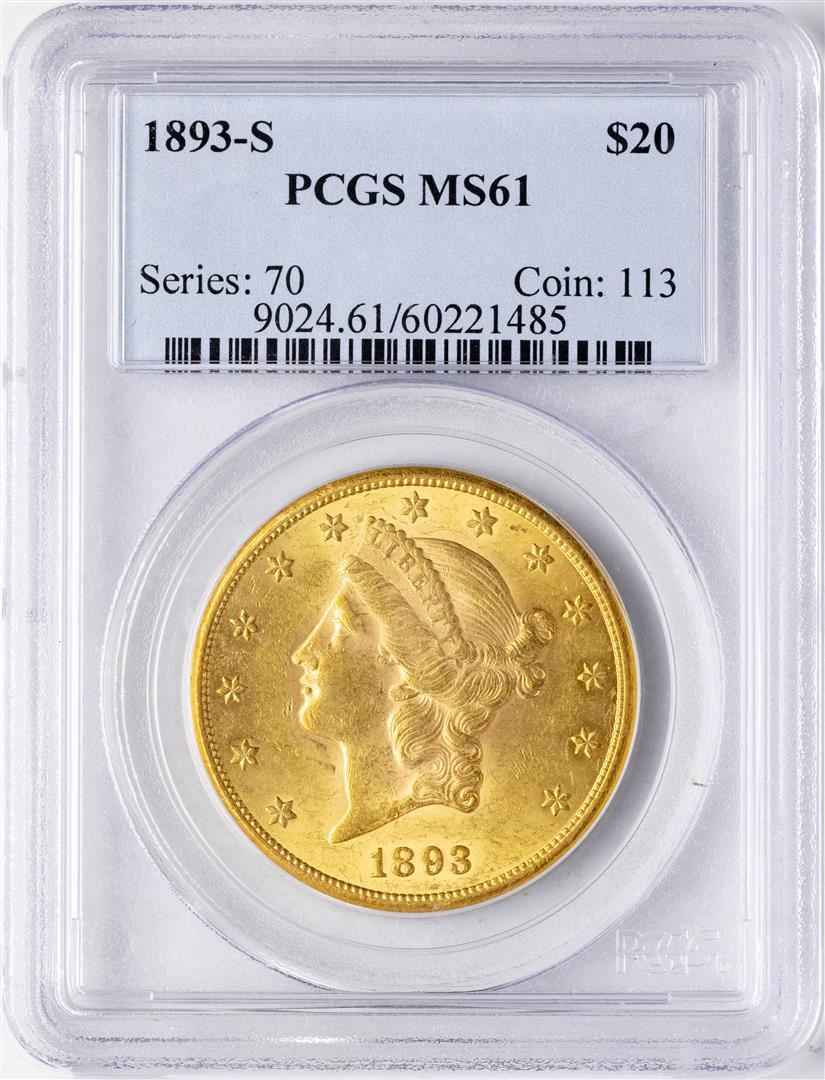 One 1893-S $20 Liberty Head Double Eagle Gold Coin PCGS MS61. PCGS Graded.