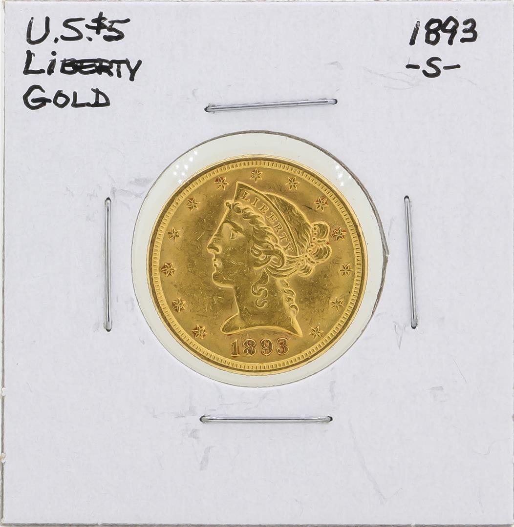 One 1893-S $5 Liberty Head Half Eagle Gold Coin.