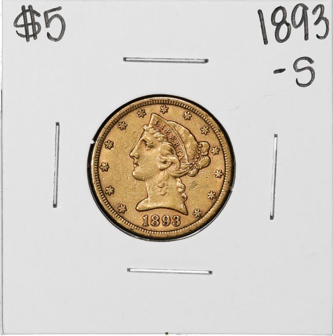 One 1893-S $5 Liberty Head Half Eagle Gold Coin.