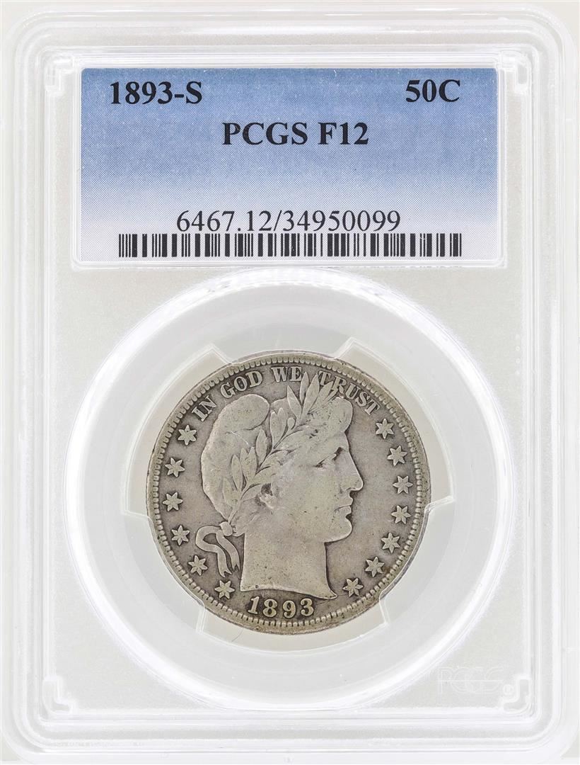 One 1893-S Barber Quarter Silver Coin PCGS F12. PCGS Graded.