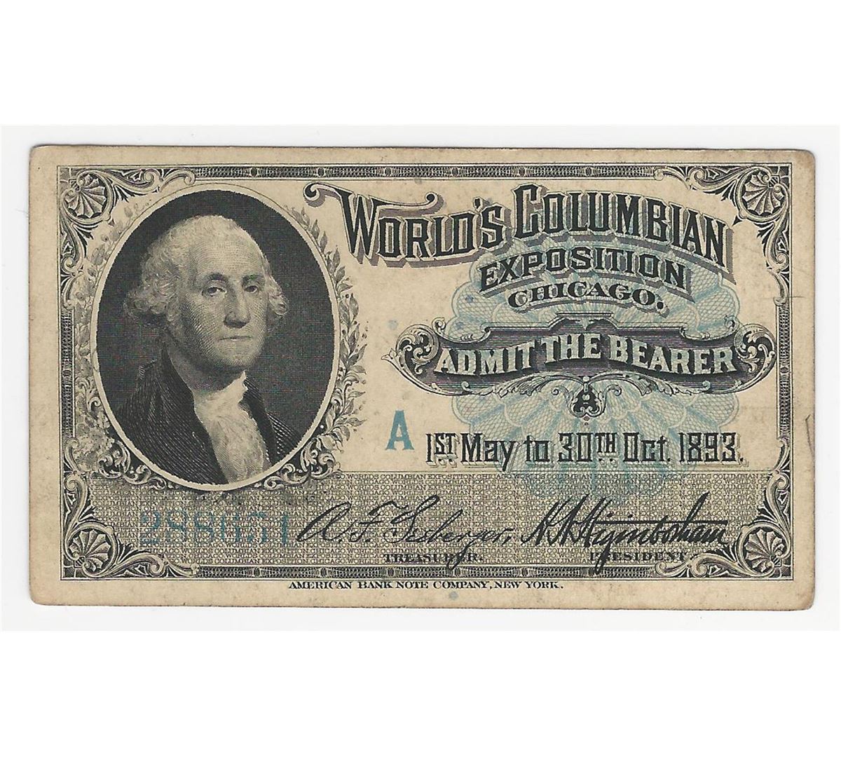 One 1893 World's Columbian Exposition Chicago Ticket.