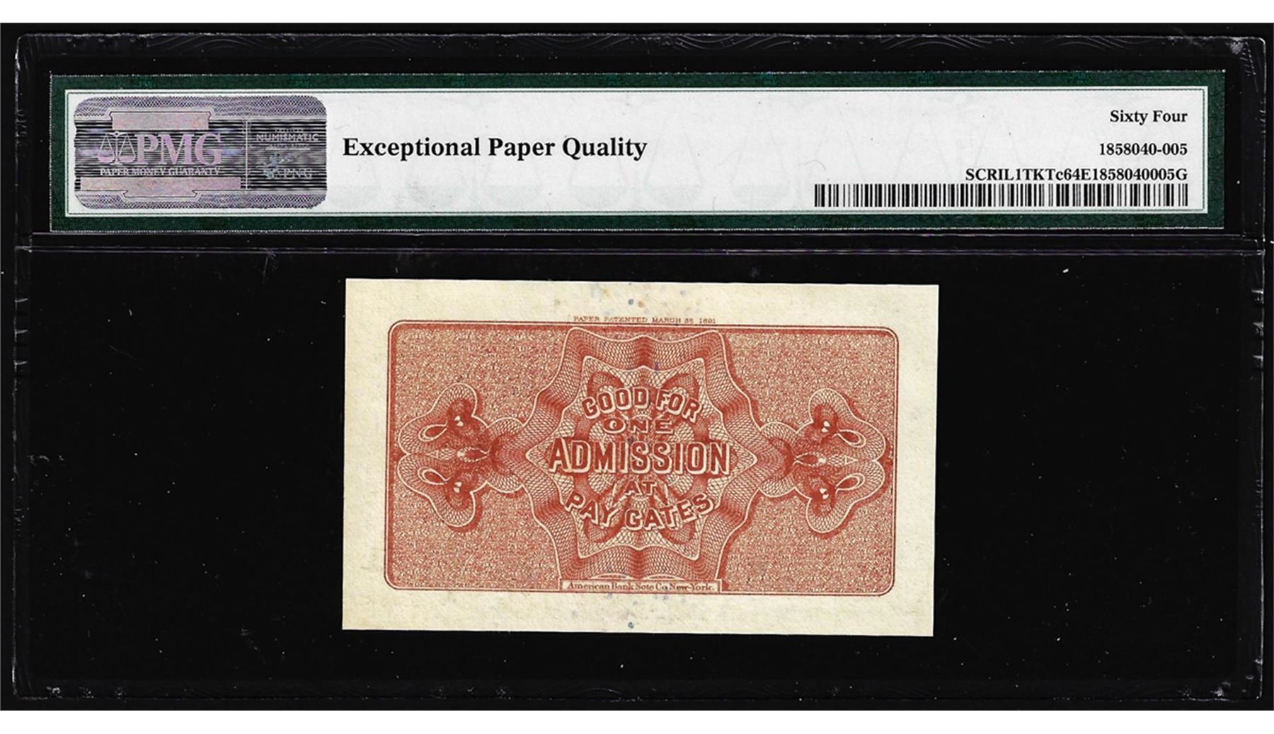 One 1893 World's Columbian Exposition Ticket Columbus PMG Choice Uncirculated 64EPQ. PMG Certified.