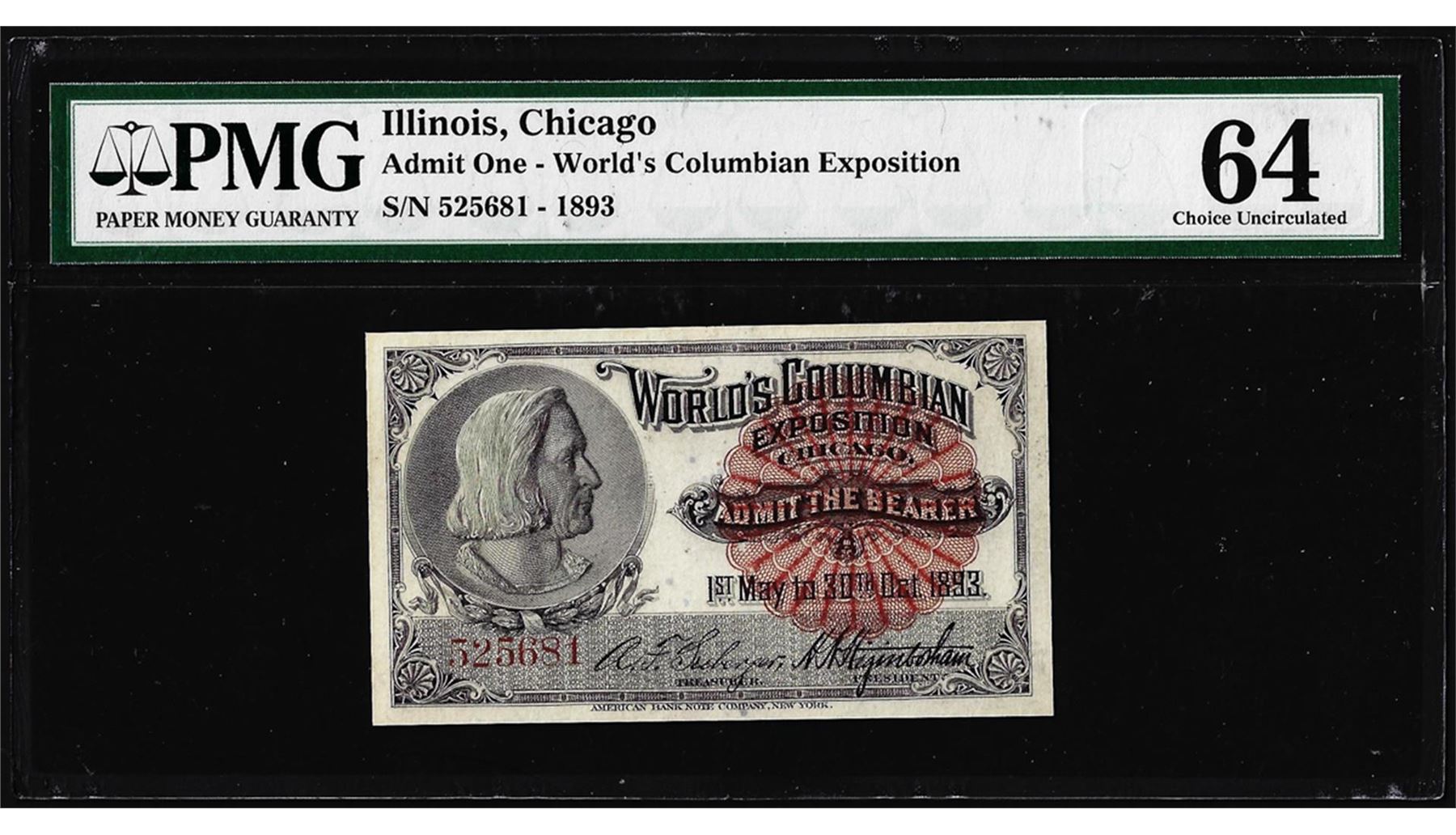 1893 World's Columbian Exposition Ticket Columbus PMG Choice Uncirculated 64