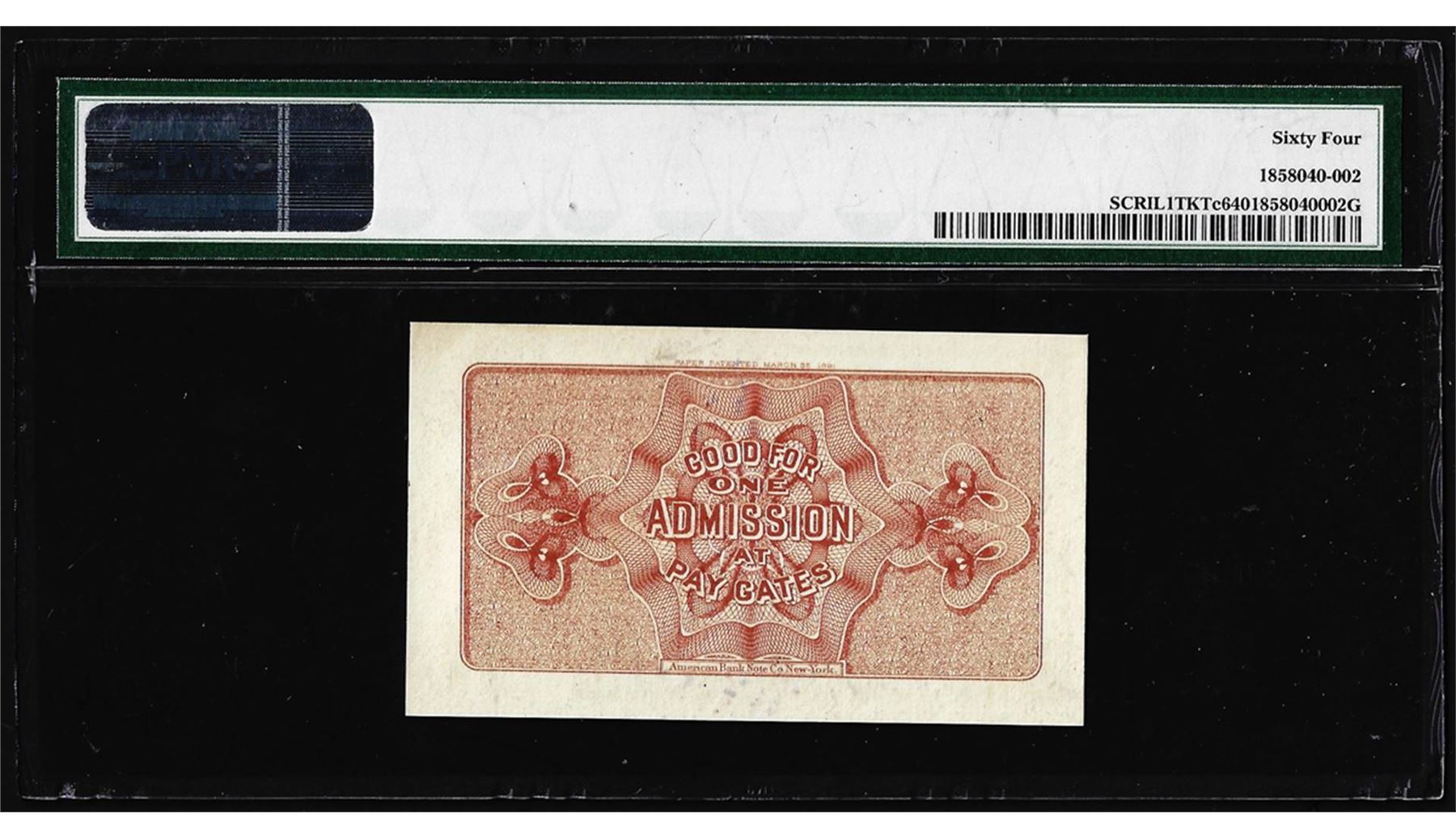 One 1893 World's Columbian Exposition Ticket Columbus PMG Choice Uncirculated 64. PMG Certified.