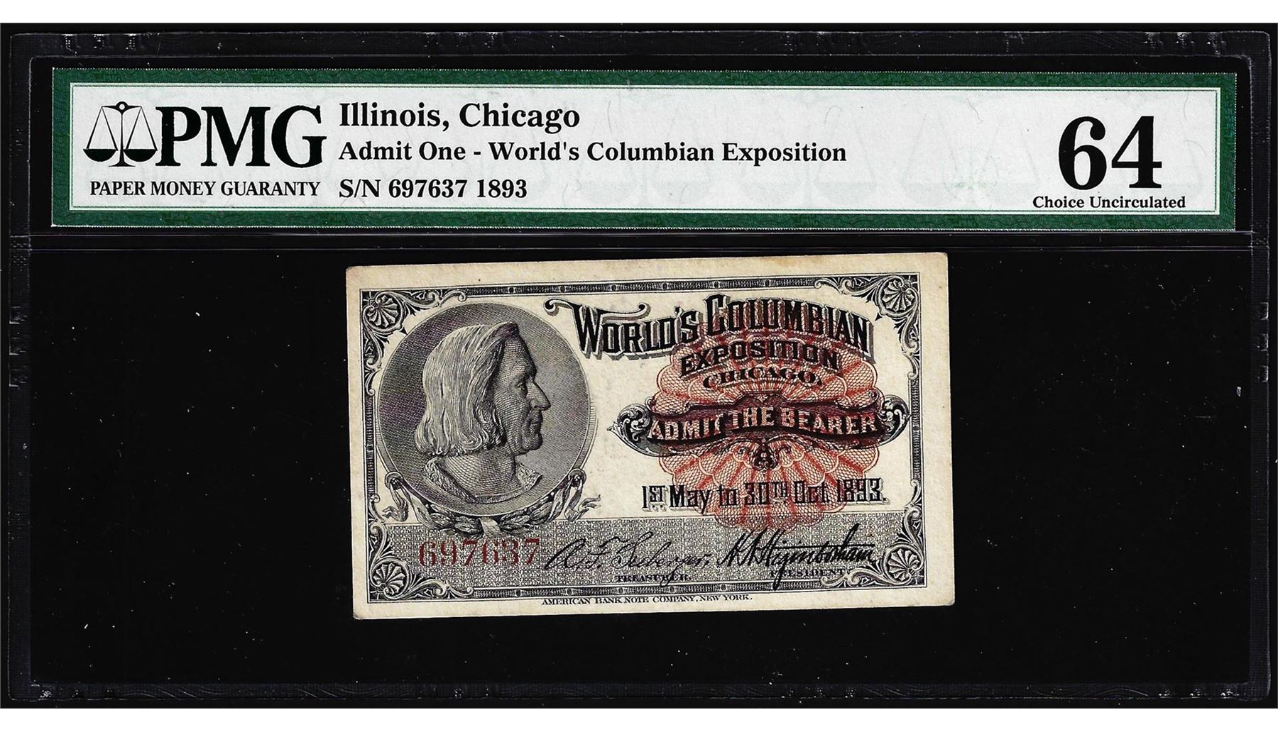 1893 World's Columbian Exposition Ticket Columbus PMG Choice Uncirculated 64