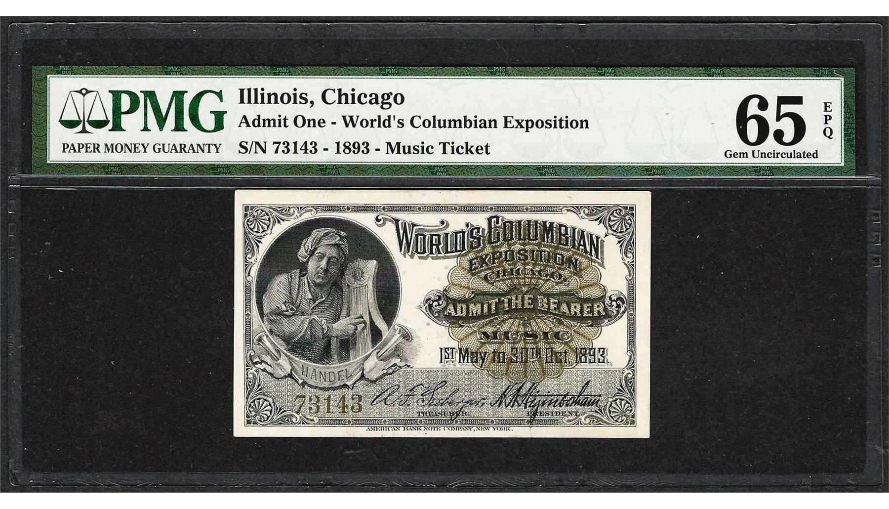 1893 World's Columbian Exposition Ticket Handel PMG Gem Uncirculated 65EPQ