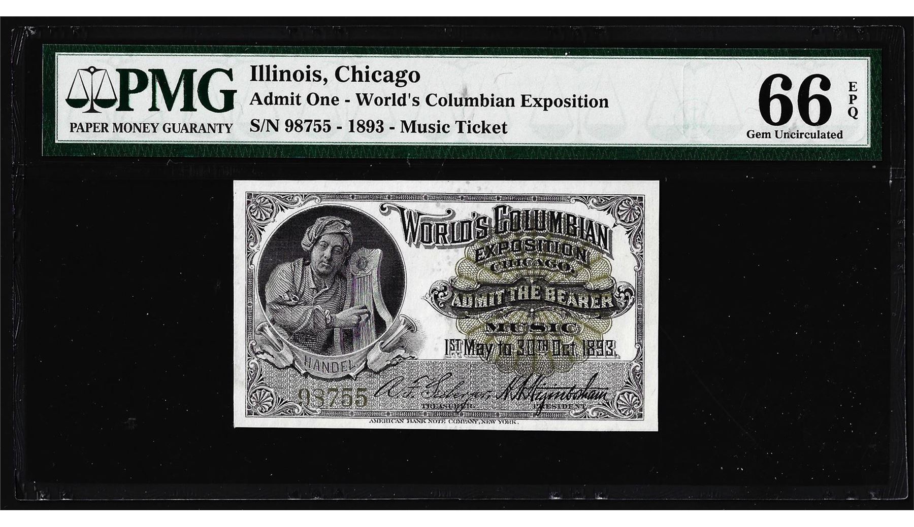 1893 World's Columbian Exposition Ticket Handel PMG Gem Uncirculated 66EPQ